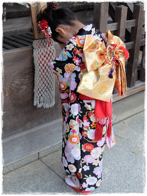 今年度の商品バリエーションには黒色の着物は無いようですが、黒色の着物に花柄が良く映えました。この時期七五三女子でごった返す(笑)神社にも、黒色の着物をお召しの女子はほとんどいなかった気がします。