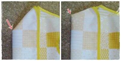 ・エプロンには何か所かカーブがありますが、縫い始め/縫い終わりはあまりカーブになっていない箇所、かつ目立たない場所がお勧めです。