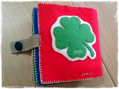 四葉のクローバー下部にはムスメの名を刺繍、ページ下部に製作年を刺繍しておりました。